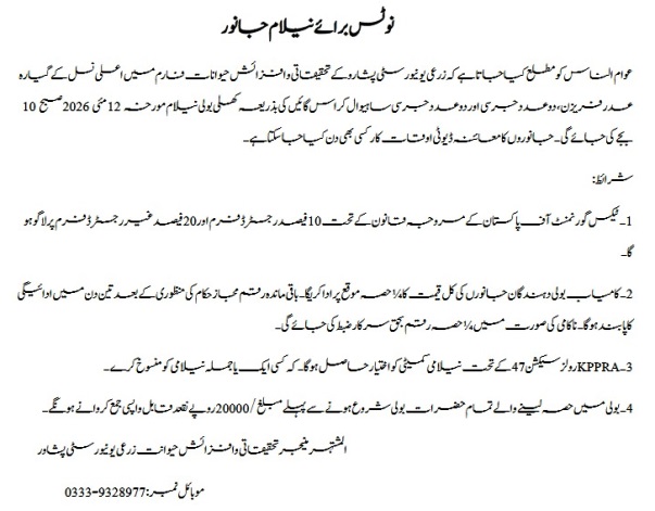 - Auction of Animals at Livestock Research & Breeding Farm.