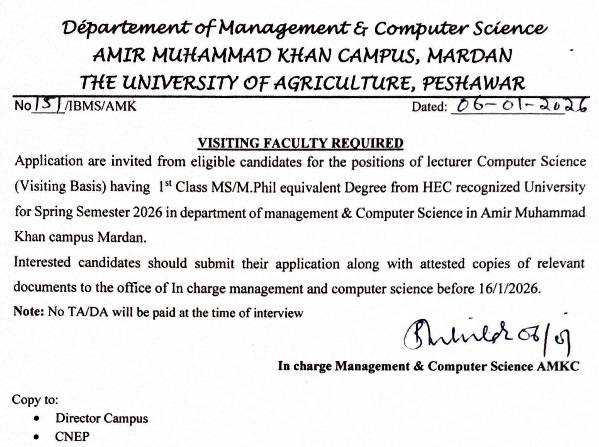 Visiting Lecturers at Department of Management & Computer Science AMK Campus Mardan.