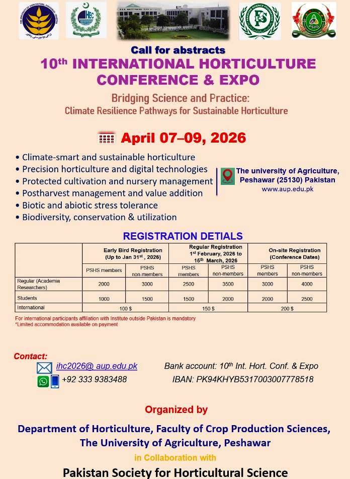 | Email: ihc2026@ aup.edu.pk | Bank account: 10thInt. Hort. Conf. & Expo |