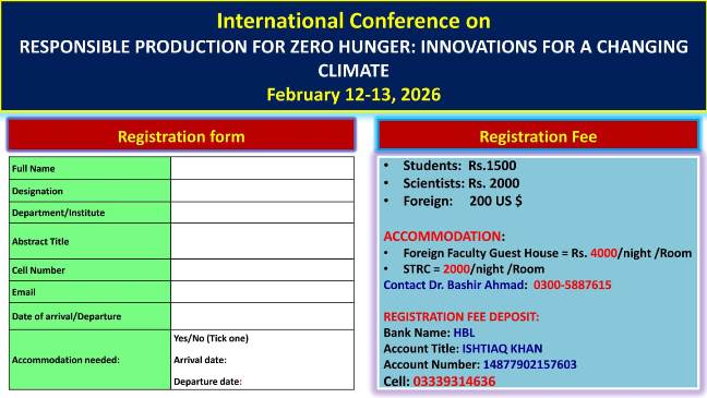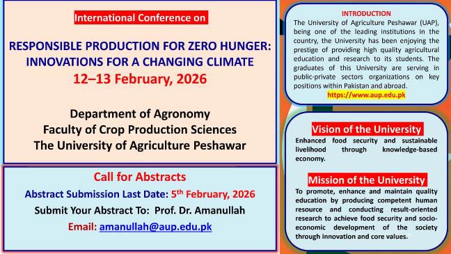 Call for Abstracts International Conference on RESPONSIBLE PRODUCTION FOR ZERO HUNGER: INNOVATIONS FOR A CHANGING CLIMATE 12-13 February, 2026