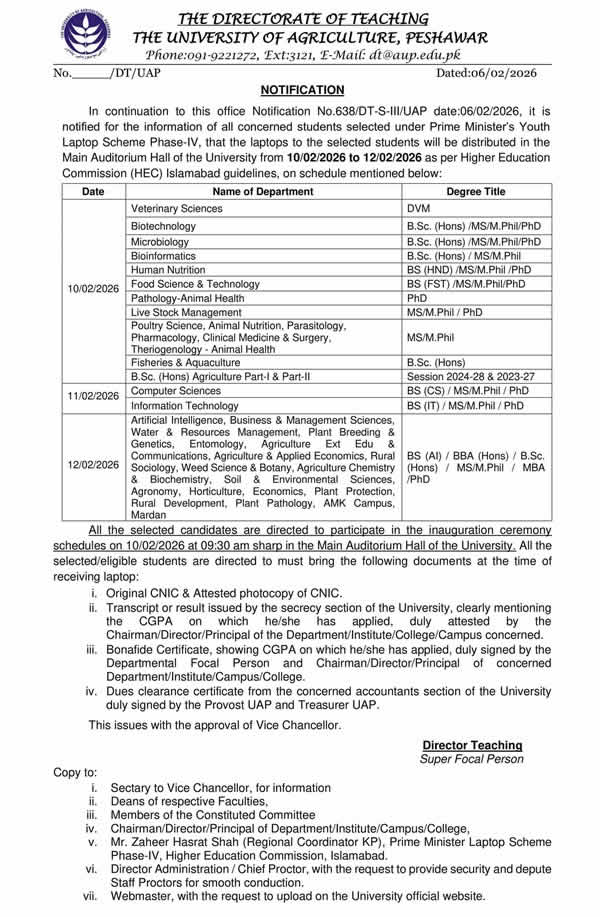 On behalf of faculty and staff and on my own behalf I welcome you to The University of Agriculture, Peshawar. This University is one of the best and amongst the top ranked Universities in Pakistan.